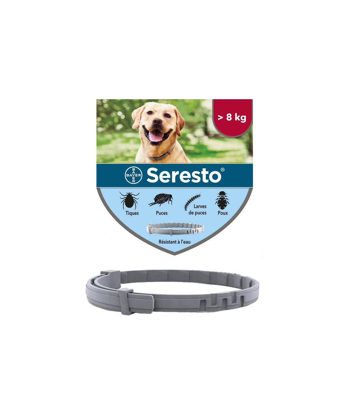 Collar SERESTO Grande es un collar antiparasitario para perros eficaz contra pulgas y garrapatas que ofrece hasta 8 meses de protección, permite una liberación constante de sus dos principios activos: Imidacloprid y Flumetrina.