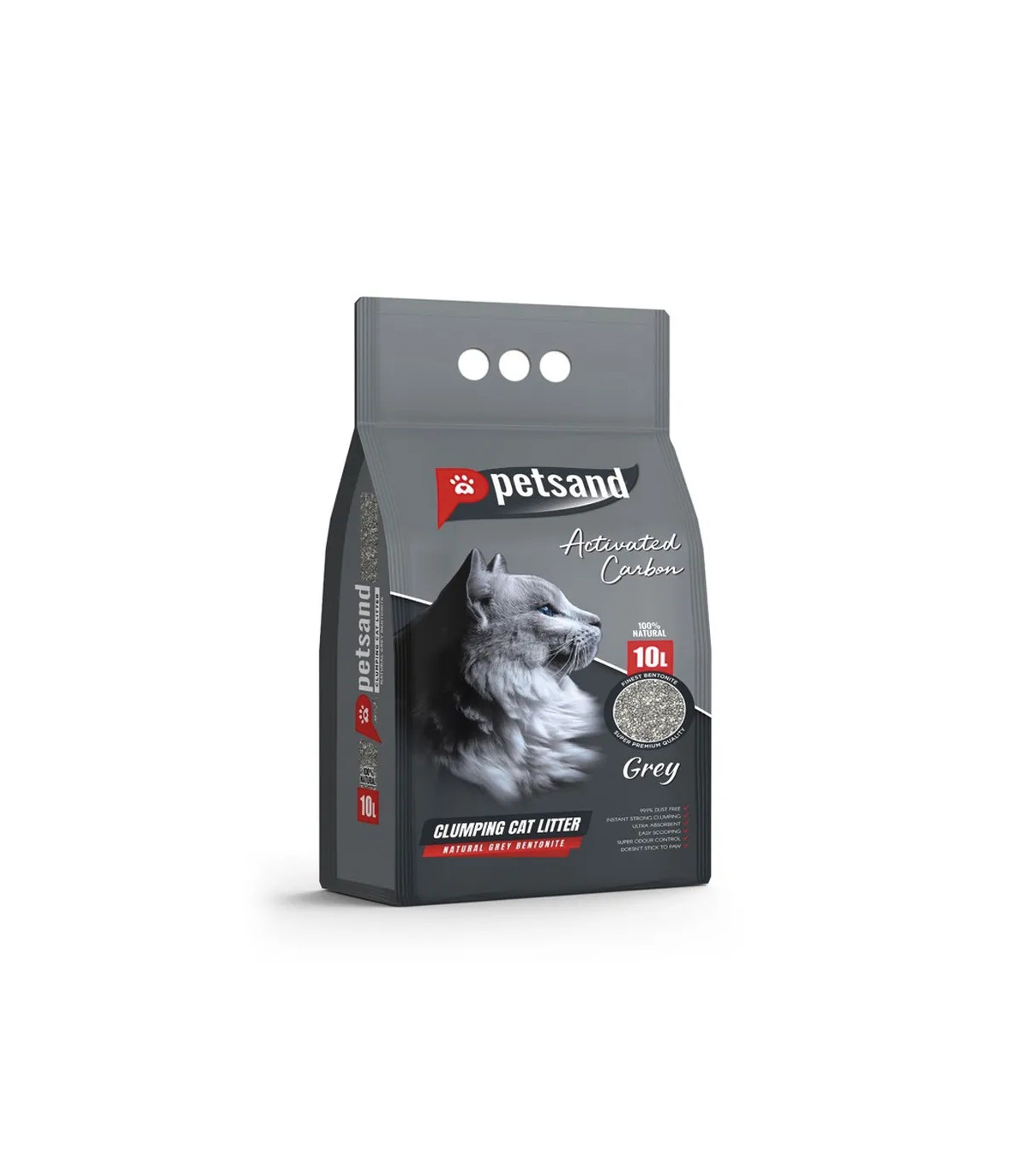 Arena PETSAN Carbón Activo es una arena aglomerante para gatos de 100% bentonita de alta calidad y carbón activo para la absorción de olores.