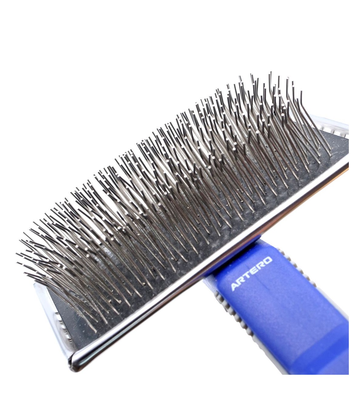 La Carda de ARTERO Especial Nudos combina el largo y grosor extra de las púas junto a su articulación limitada convirtiéndola en una carda ideal para la eliminación de nudos y enredos de cualquier tipo de manto y densidad.
