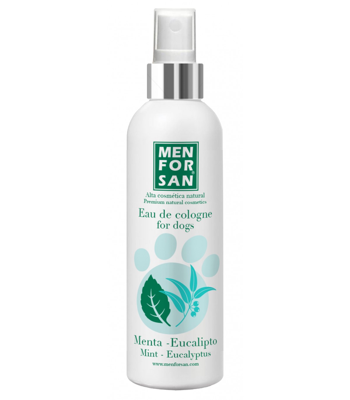 La COLONIA Menta y Eucalipto MenForSan para perros tiene un agradable y fresco aroma a menta y eucalipto perfecto para después del baño, respetando su piel y las propiedades olfativas.
