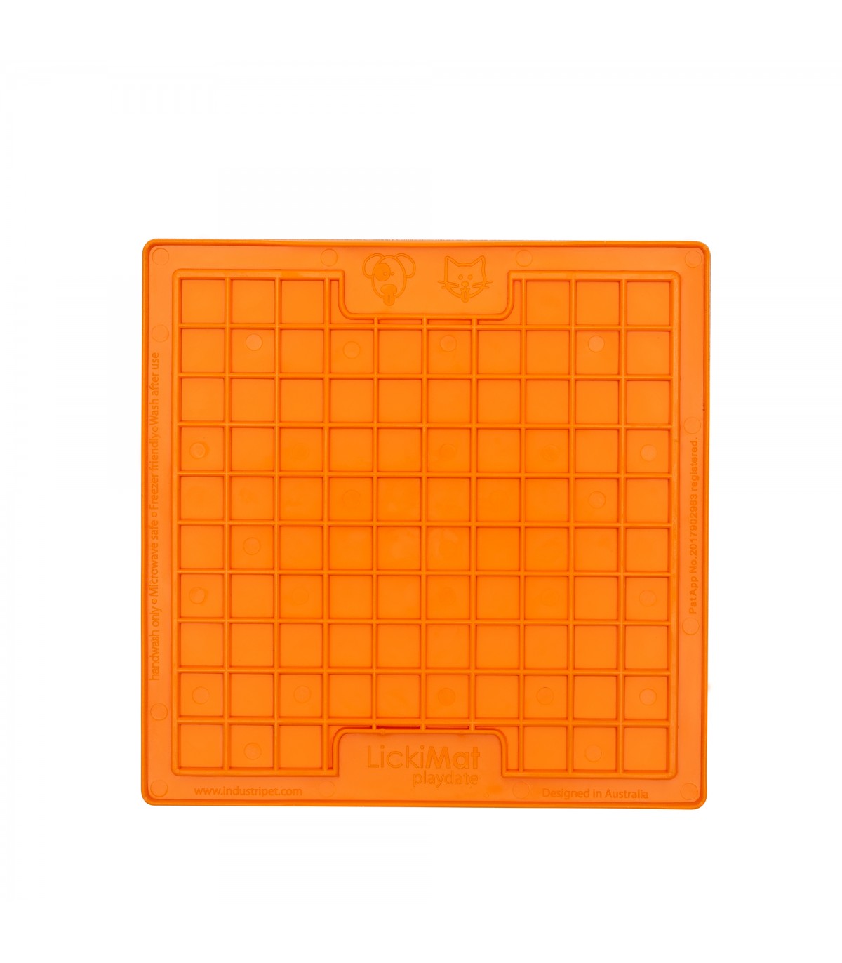 LICKIMAT Playdate Classic es una esterilla con diseño en cuadricula para poder untar comida húmeda, caldos, kefir, barf... manteniendo a nuestra mascotas entretenida mientras se lo comer a base de lametazos.