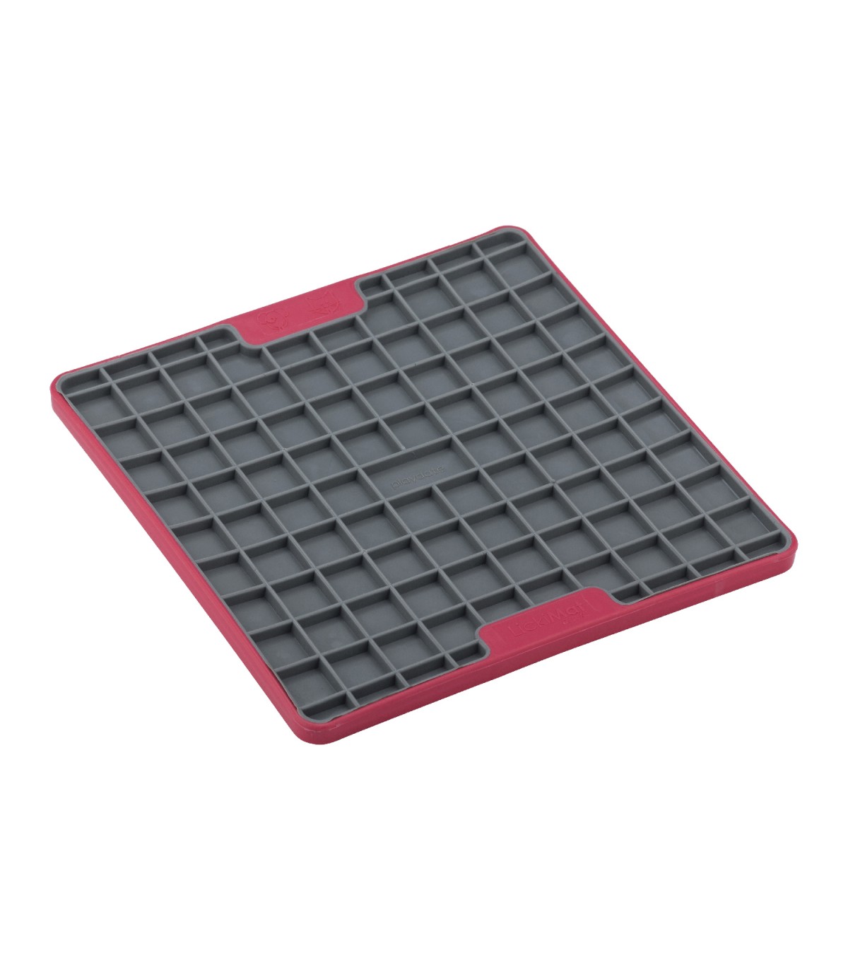 LICKIMAT Playdate Tuff es una esterilla rígida con diseño en cuadricula para poder untar comida húmeda, caldos, kefir, barf... manteniendo a nuestra mascotas entretenida mientras se lo comer a base de lametazos.